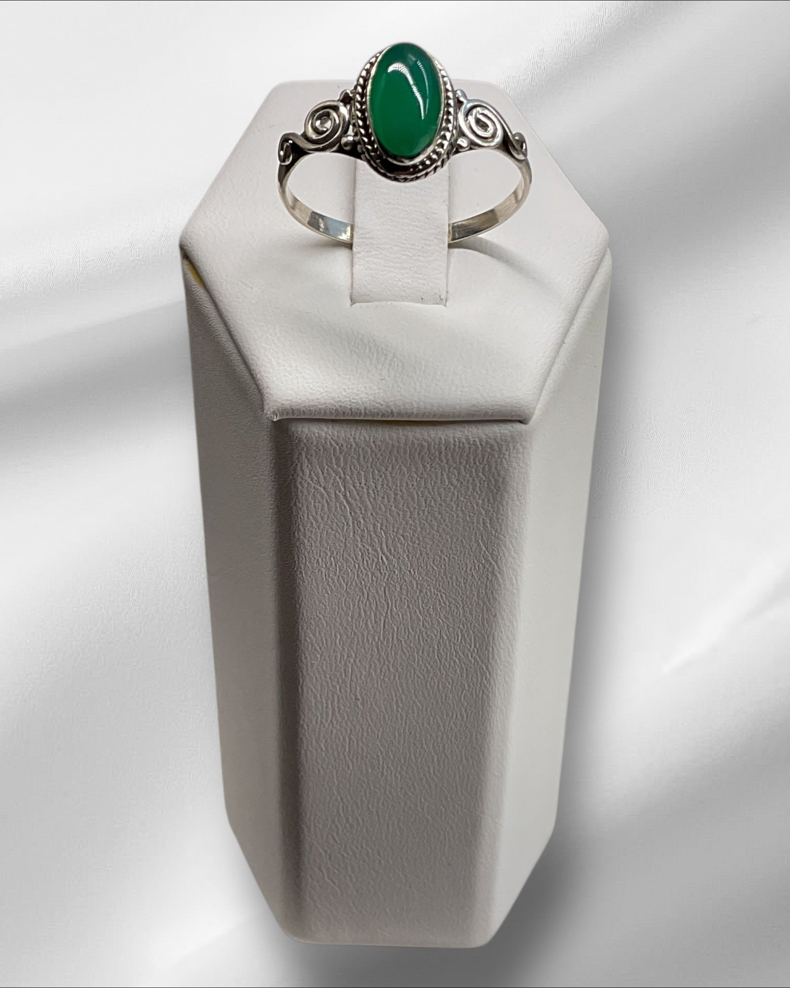 Make a bold statement with this striking sterling silver ring showcasing a deep green onyx gemstone. The rich, earthy green tones of the onyx create a sophisticated look that works beautifully with both casual and formal wear. Set in authentic sterling silver, this Size 11 ring offers exceptional quality and lasting shine. The smooth, polished surface of the onyx catches the light in an understated yet captivating way. Perfect for someone seeking a distinctive piece that adds character and confidence to their personal style.