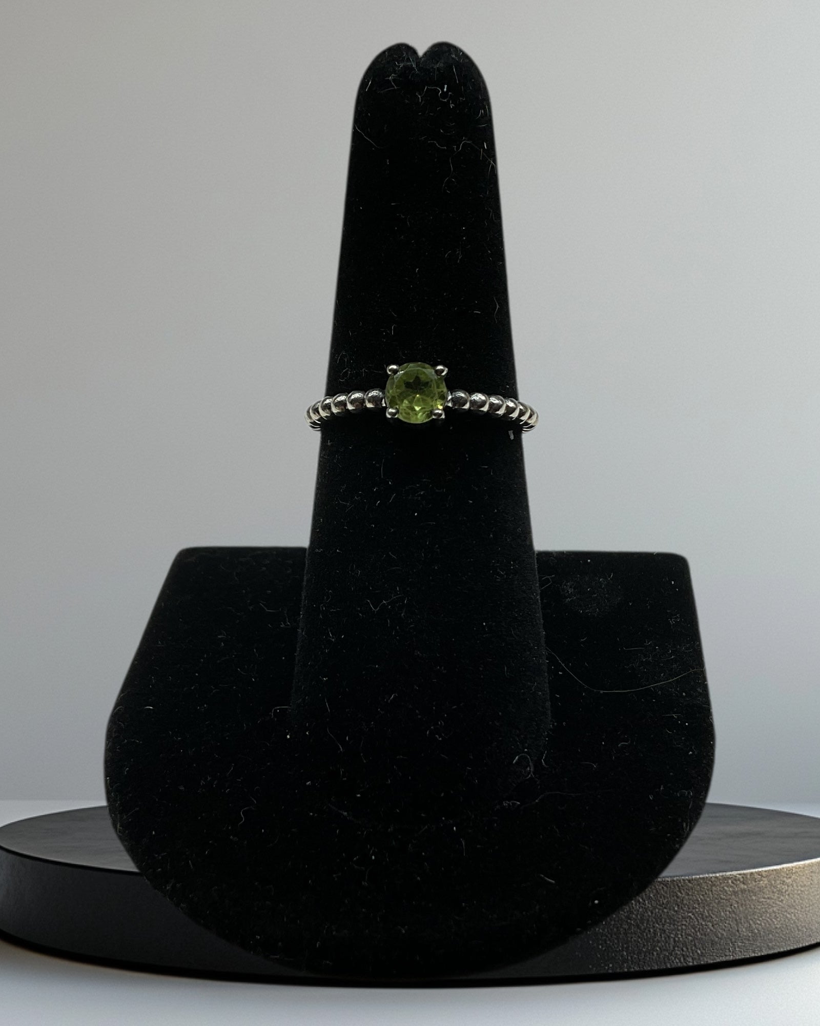 This size 6.5 ring from the Bling Collection features a stunning peridot gemstone set in durable sterling silver 925. Its calming green hues bring a touch of tranquility to your style, while the high-quality silver ensures lasting shine and comfort. Perfect for everyday wear or special occasions, this ring combines elegance with meaningful beauty.