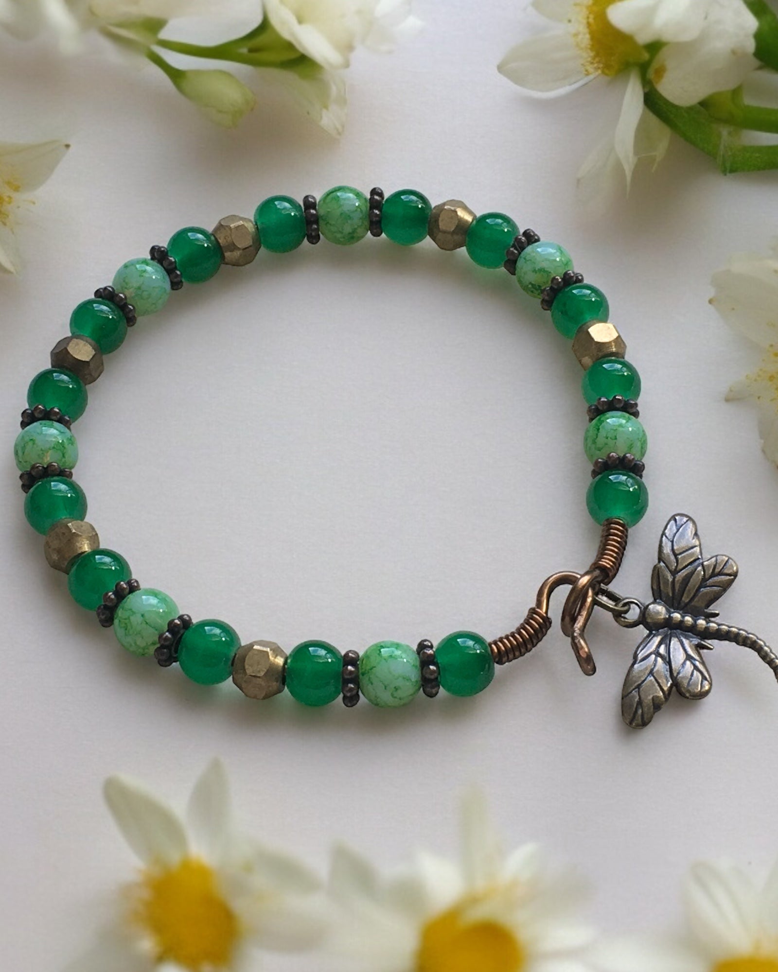 Indulge in the natural beauty of our Green Adventurine Bracelet. This stunning piece features gold and bronze accents, enhancing the deep green tones of the adventurine. With a length of 7-1/2 inches, this bracelet is the perfect addition to any outfit, providing a touch of sophistication and elegance. Elevate your style with this exclusive and luxurious bracelet.