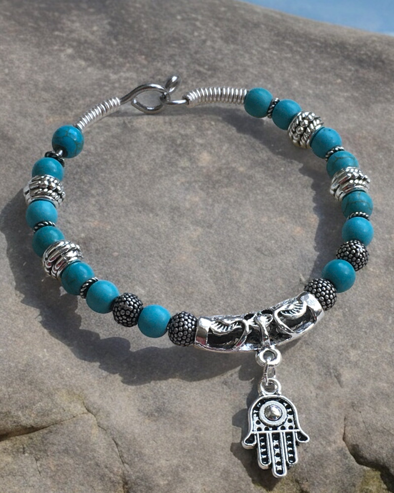 Indulge in the luxurious elegance of our Malachite and Silver Bracelet. The stunning 7-1/2" design features intricate silver accents and the vibrant green hues of malachite. Elevate any outfit with this sophisticated and exclusive piece.