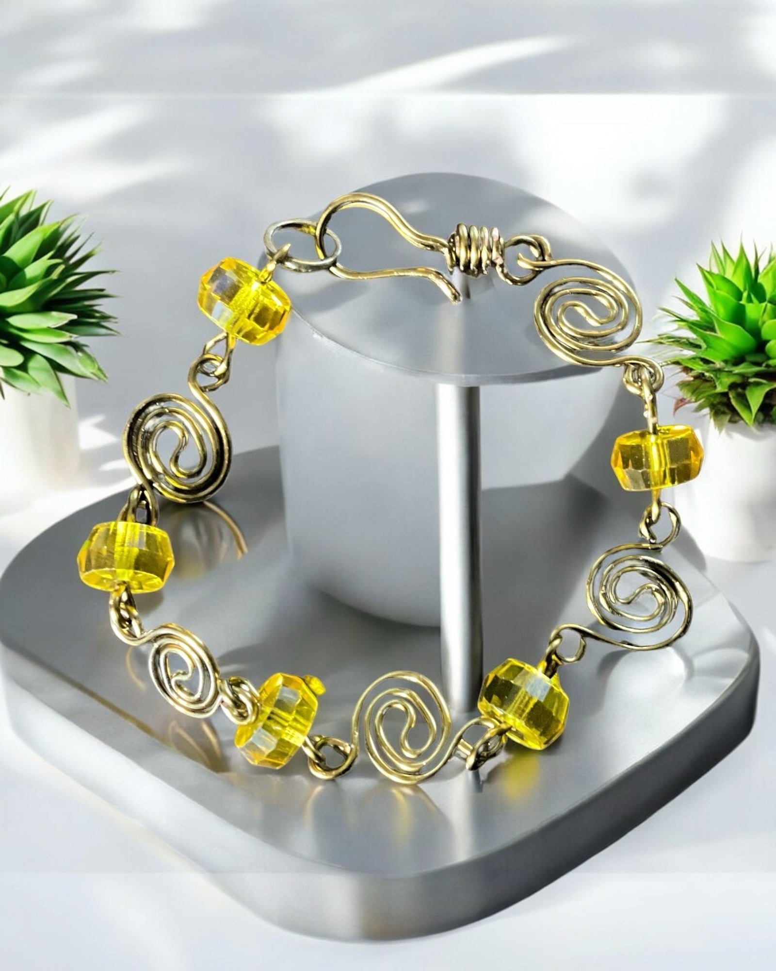 Elevate your style with this stunning 7-1/2" gold wire spiral bracelet. Its elegant design is perfect for any occasion, adding a touch of sophistication and luxury to your outfit. Crafted with high-quality materials, this bracelet features a secure clasp that ensures it stays comfortably on your wrist all day long. Treat yourself or a loved one to this timeless piece of jewelry that is sure to impress!