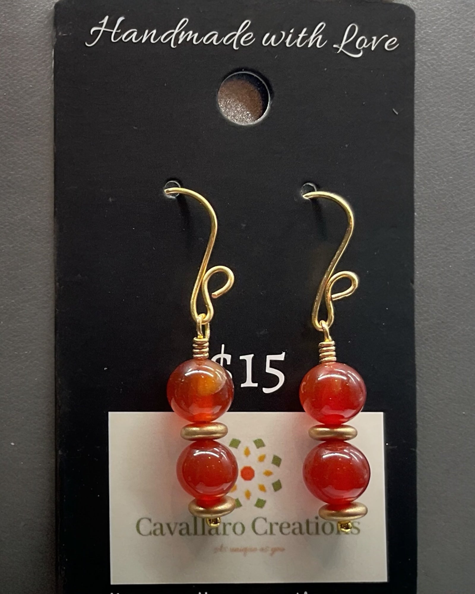 Embrace warmth and natural beauty with this stunning carnelian agate pendant. Featuring a generous 1-1/2" drop of rich, earthy stone, it's complemented by elegant gold plated accents that catch the light beautifully. Carnelian is cherished for its grounding energy and vibrant presence. Whether you're drawn to its aesthetic appeal or its meaningful properties, this custom creation makes a thoughtful addition to your collection. A piece designed to inspire confidence and joy.