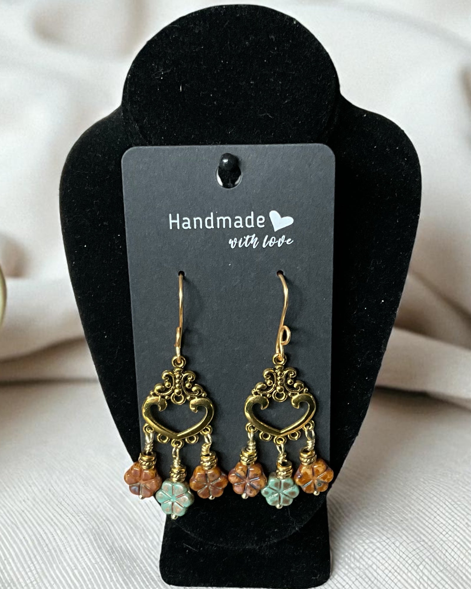 These earrings feature charming Czech glass flowers delicately arranged on a 1.5-inch drop. Lightweight and elegant, they provide a gentle, supportive accent that complements any style with a touch of floral grace.