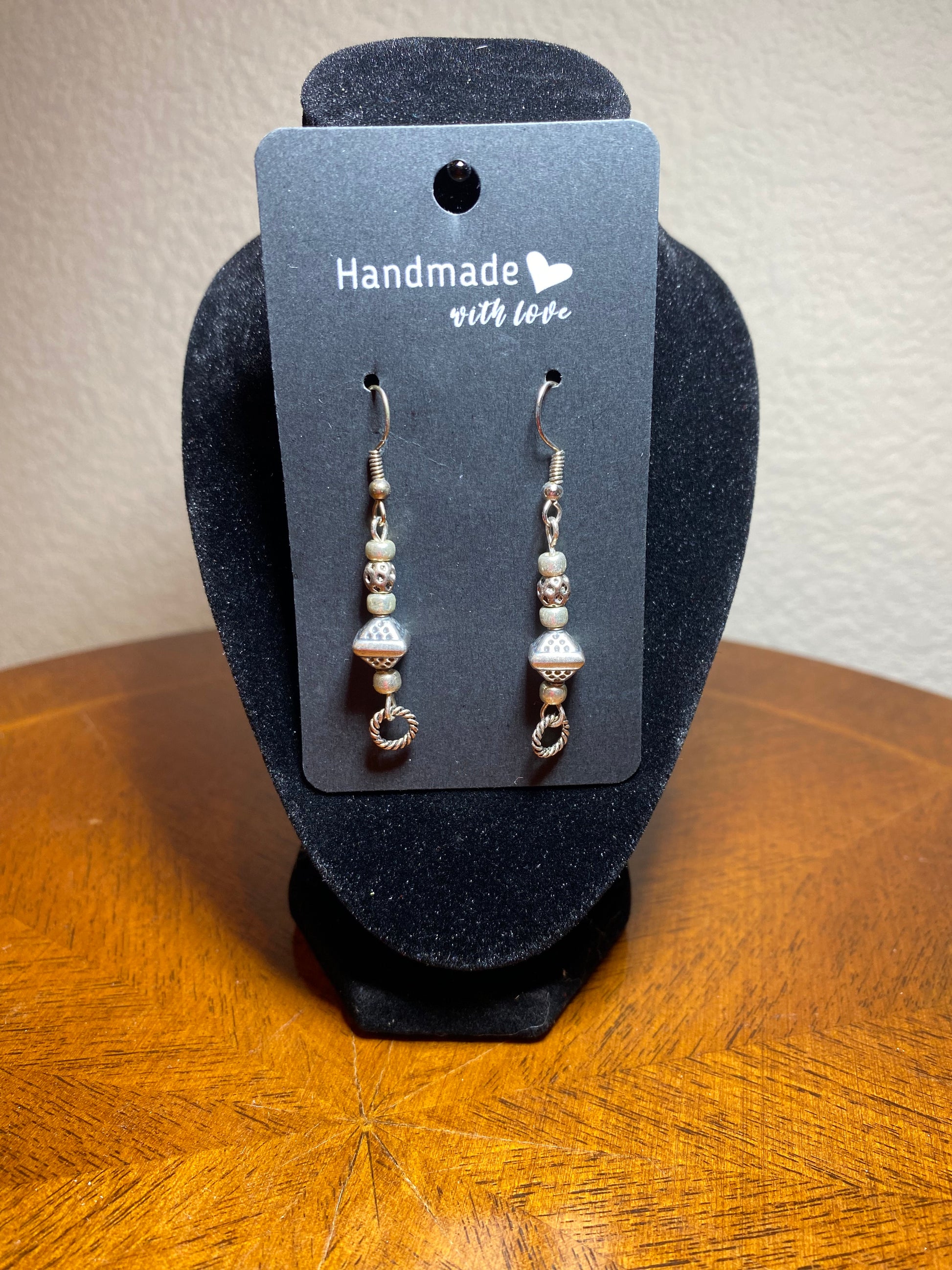 These elegant earrings feature silver metal beads on a matching silver base, accented with a delicate circle ring dangle. Enjoy the classic look and versatile style of these earrings, perfect for any occasion. Crafted with high-quality materials, these earrings are sure to make a statement and add a touch of sophistication to any outfit.