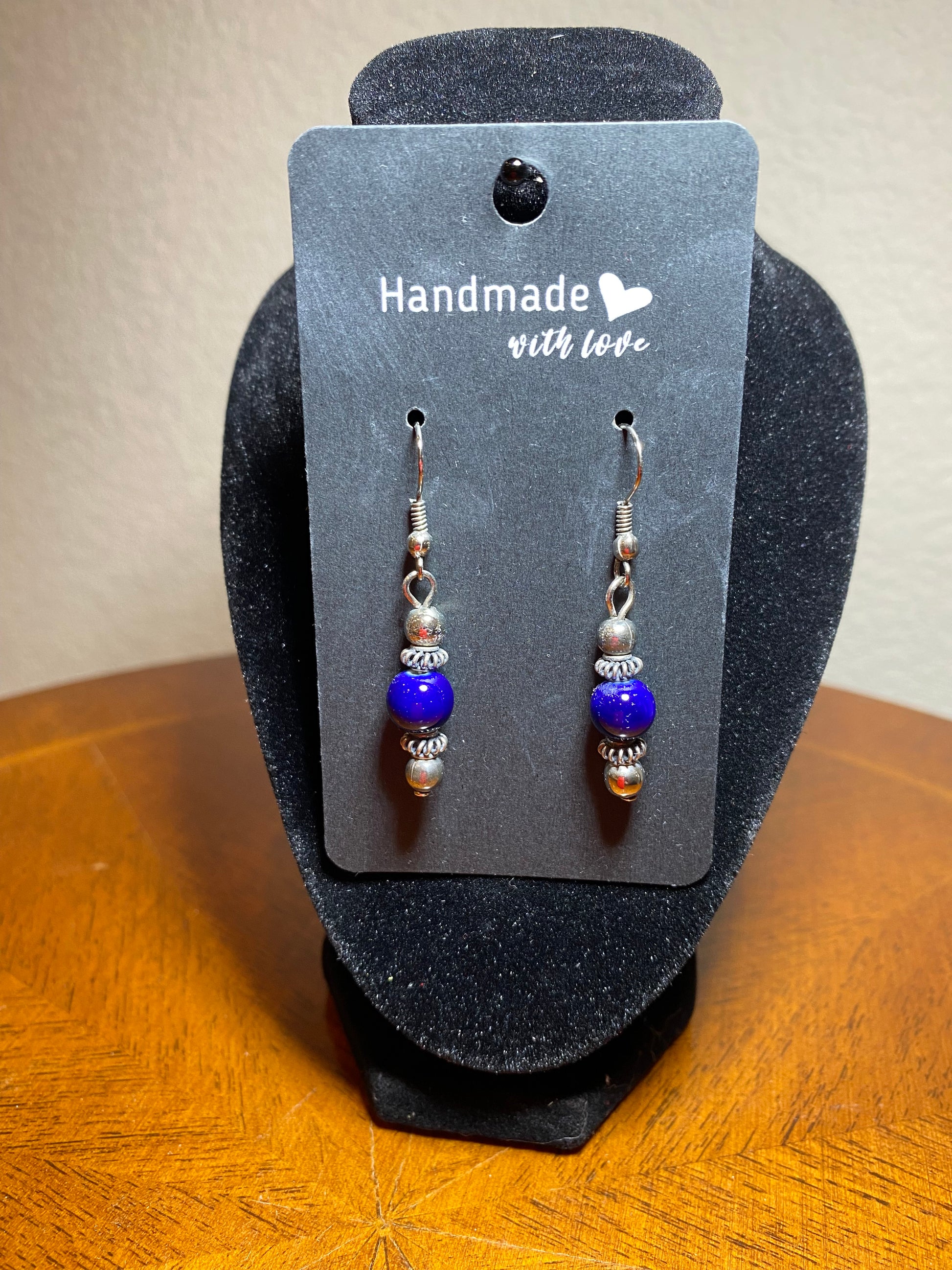 Experience royal sophistication with our 1-1/2" drop earrings featuring stunning royal blue lazurite stones and elegant silver accents. Elevate any outfit with this timeless addition to your jewelry collection.