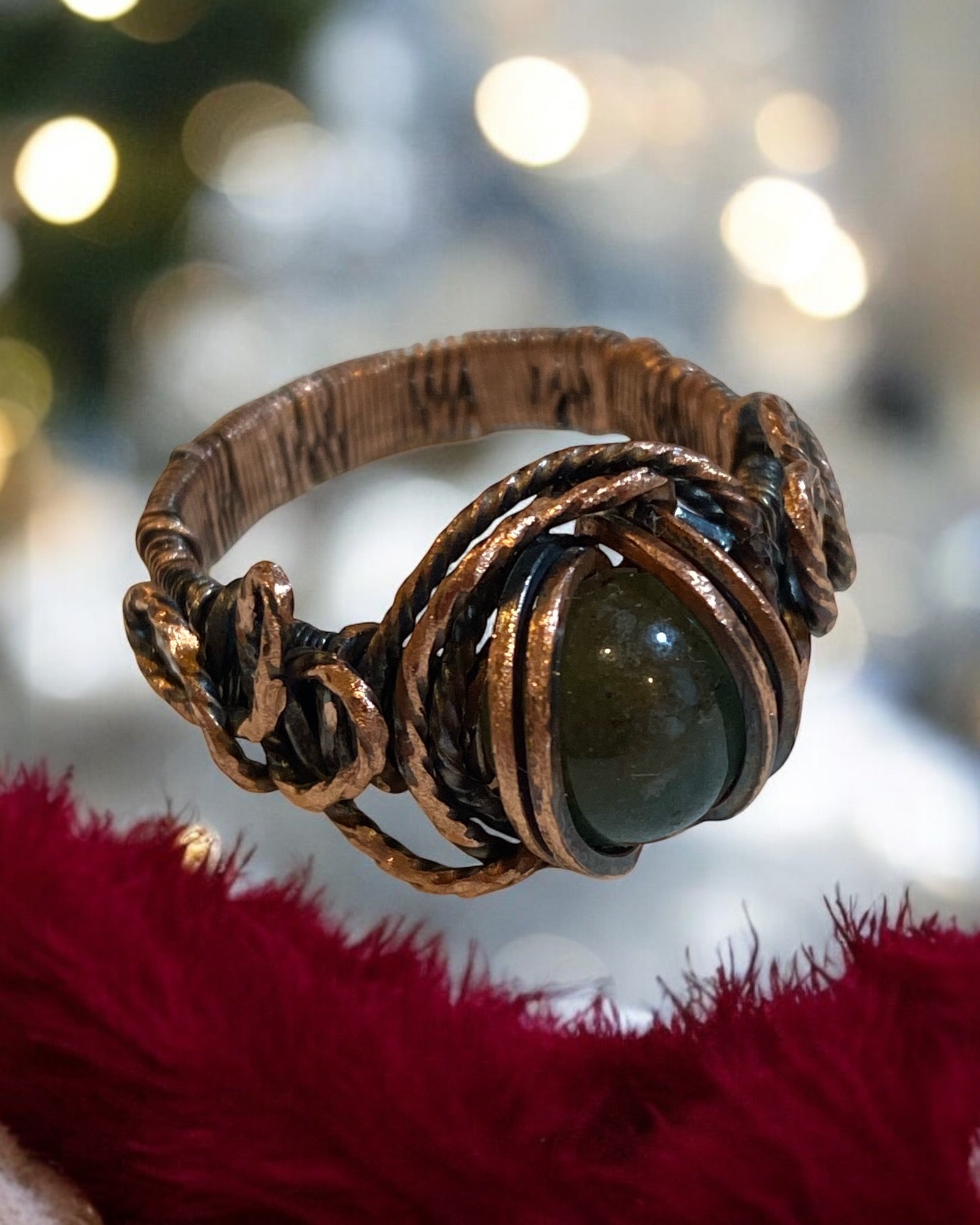 This quirky Ring, with its oxidized copper and stunning jade gemstone, is sure to add a touch of whimsy to any outfit. Its size 8 fit makes it perfect for everyday wear. Make a statement and showcase your unique style with this playful accessory.